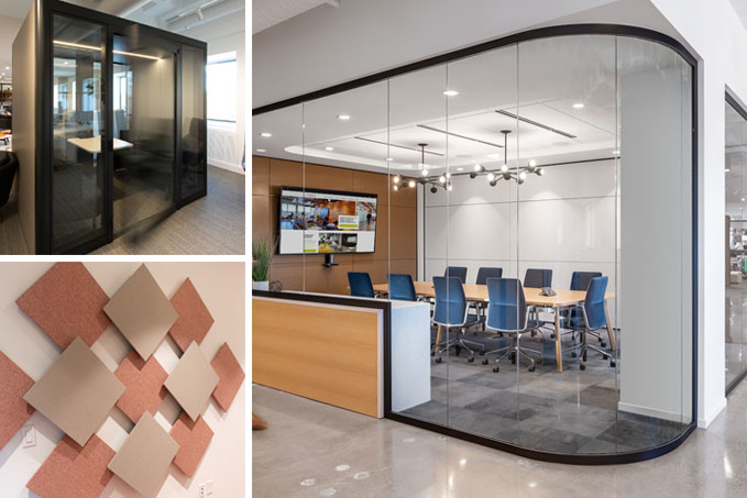 Walls, custom millwork and cabinetry, booths and pods, wall coverings, room dividers, signage and more.