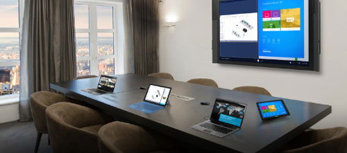 The idea of touch-enabled presentation and collaboration on massive 4K screens is a mouth-watering prospect of business meeting room productivity at its utmost. In the ideal situation room, leaders stand with their team gathered around their touch-enabled displays sharing vital documents from laptops, tablets, phablets and desktops in other time zones with the touch of a finger. Collaborators dial in to join the brainstorming, drawing up plans, analyzing impressive amounts of data, and making vital decisions, together, in real-time.