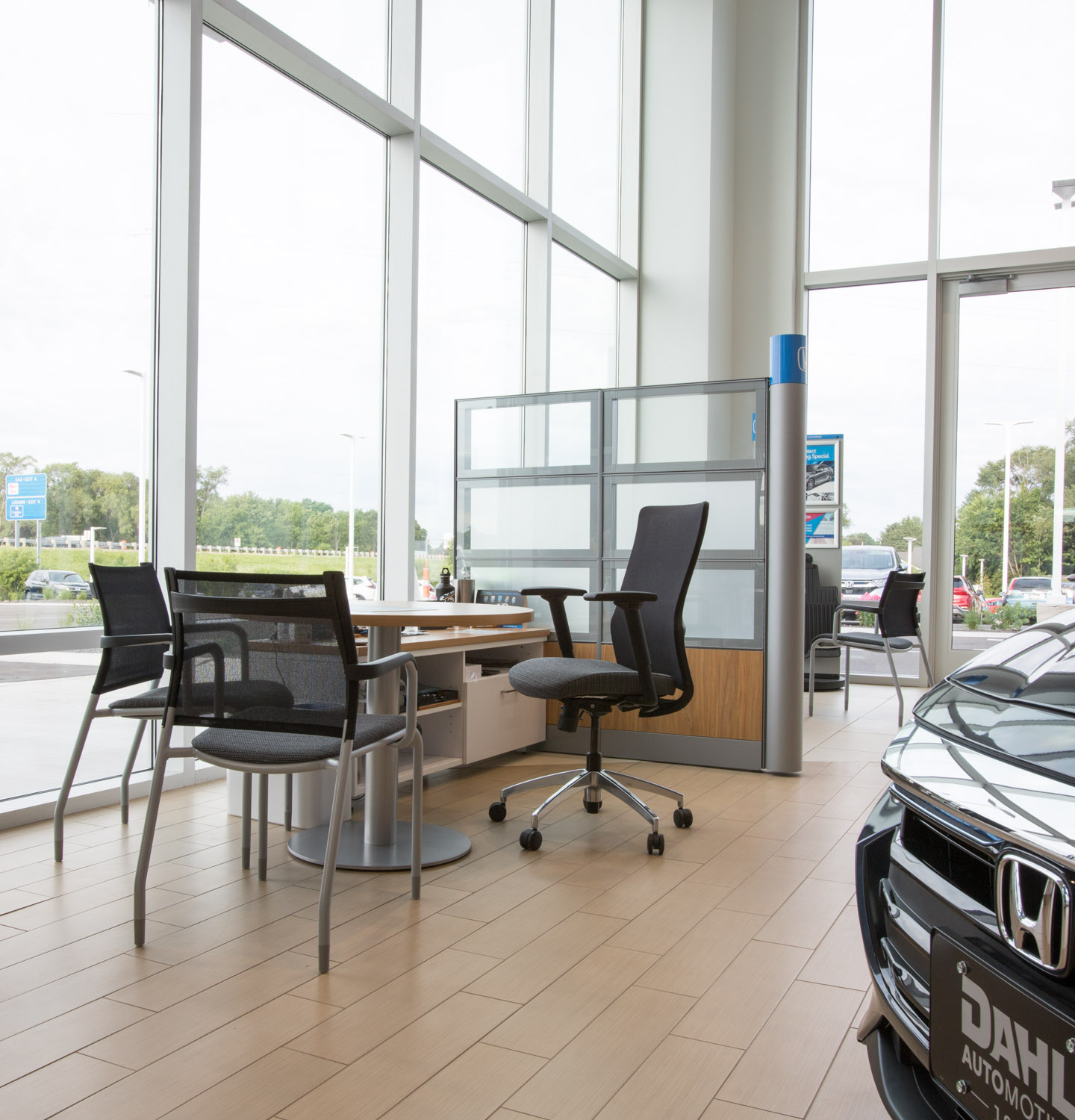 Dahl Automotive, founded in 1911, continues to expand their dealership presence along the Minnesota/Wisconsin border, opening the Dahl Honda dealership in Onalaska, Wisconsin. Reuniting with Gries Architectural for the design of a new building and iSpace Environments for interior furniture & custom millwork applications, they launched their new Onalaska, WI, location in the summer of 2020.