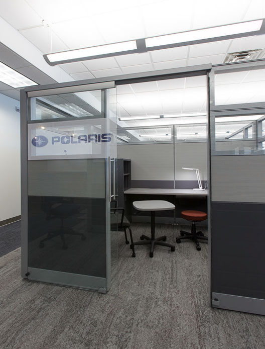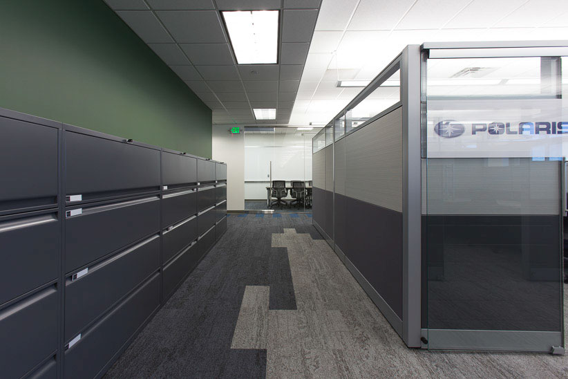 Polaris and project collaborators set an aggressive timeline for the renovation of the space and looked to iSpace as a trusted partner for furnishings and timely implementation across the facility. Starting on the top floor and working their way down, iSpace project management and installation teams orchestrated the delivery, staging and assembly of furnishings for workstations, private offices, formal and informal meeting spaces, lounge and file storage areas as well as the main floor cafeteria.