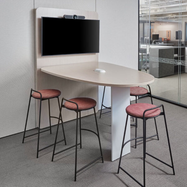 A smart huddle tech add-on for the HiP Award Finalist HiQ height adjustable workstation system.
