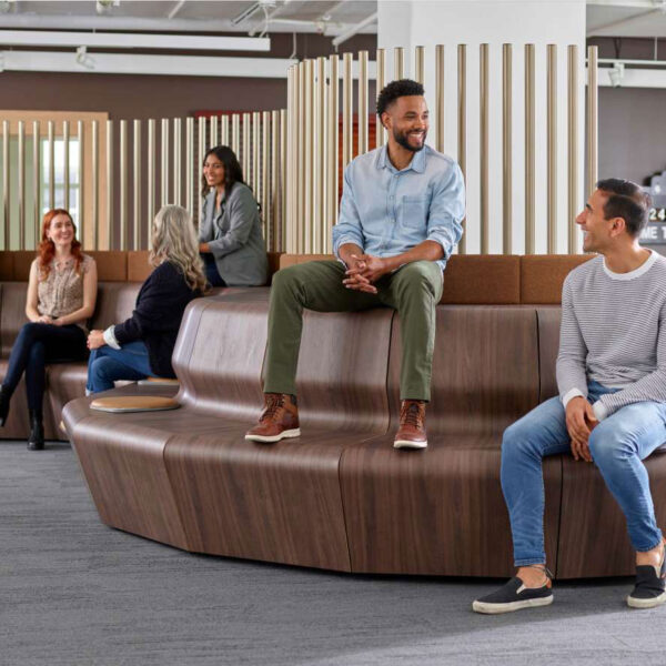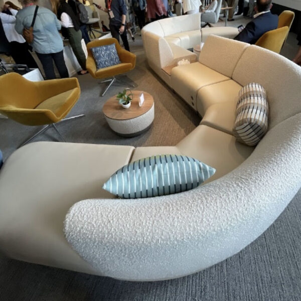 We loved this modular lounge seating and how clean the design looked in the space. With a thinner width, we could see this in many different environments.