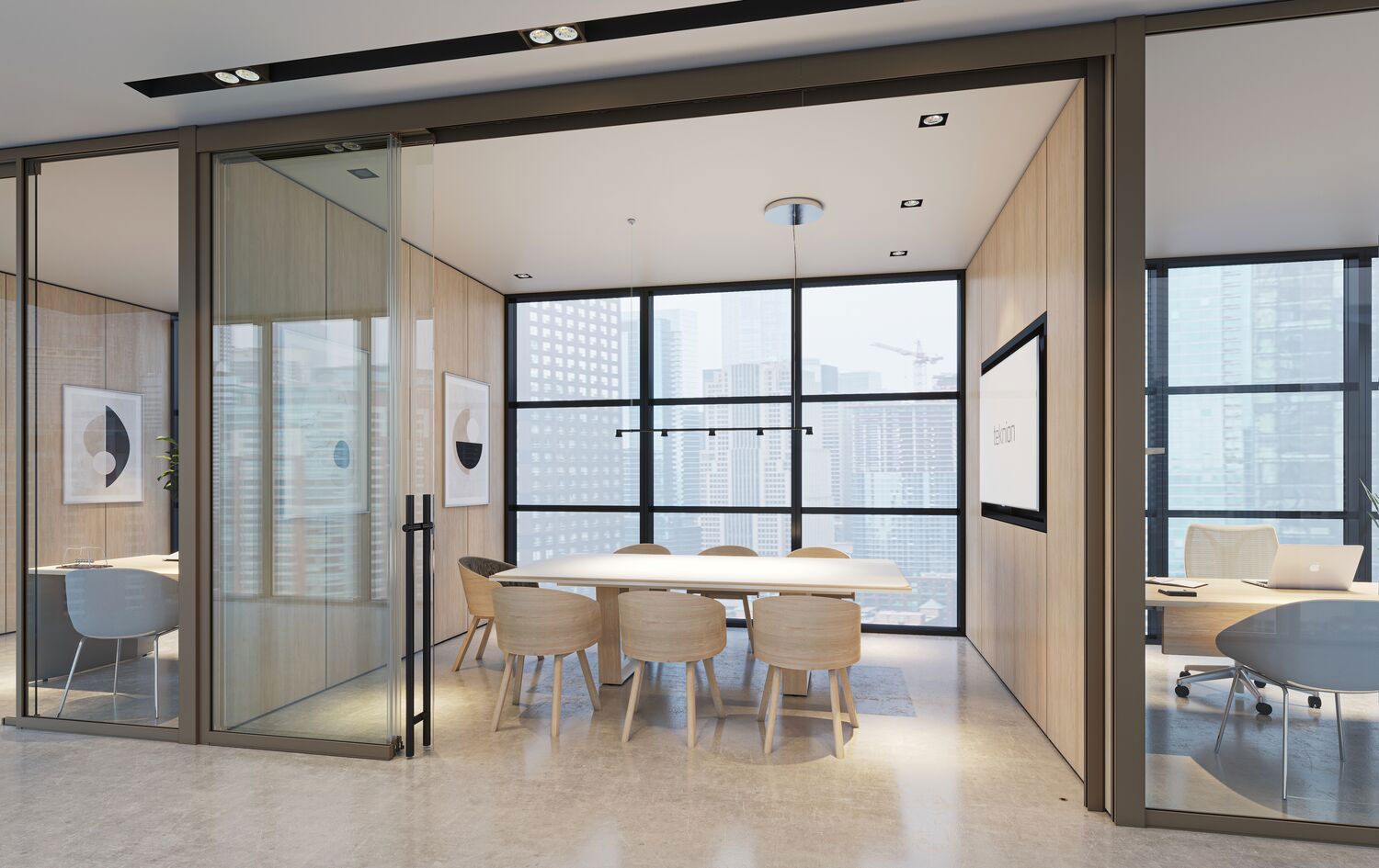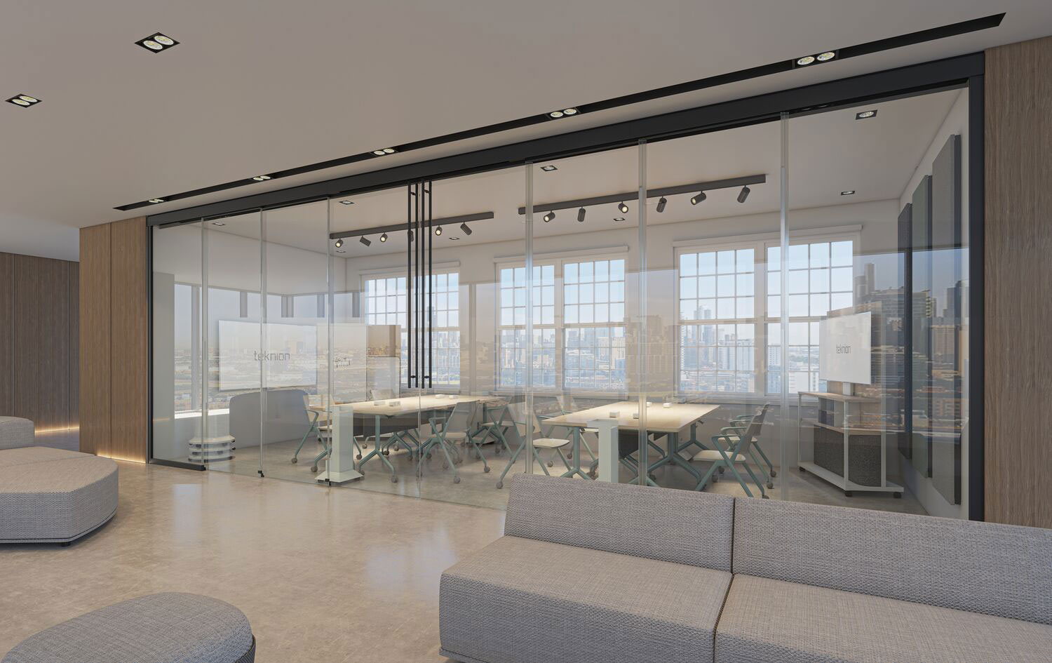 Telescope provides effortless integration with existing Teknion wall programs. Its handle program, consistent across all Teknion wall systems, ensures cohesive integration into any project. Additionally, Telescope is designed with handle accessibility and adjustability in mind. The Telescope system features significant adjustment capability to accommodate variations in the ceiling or floor, ensuring a perfect fit.